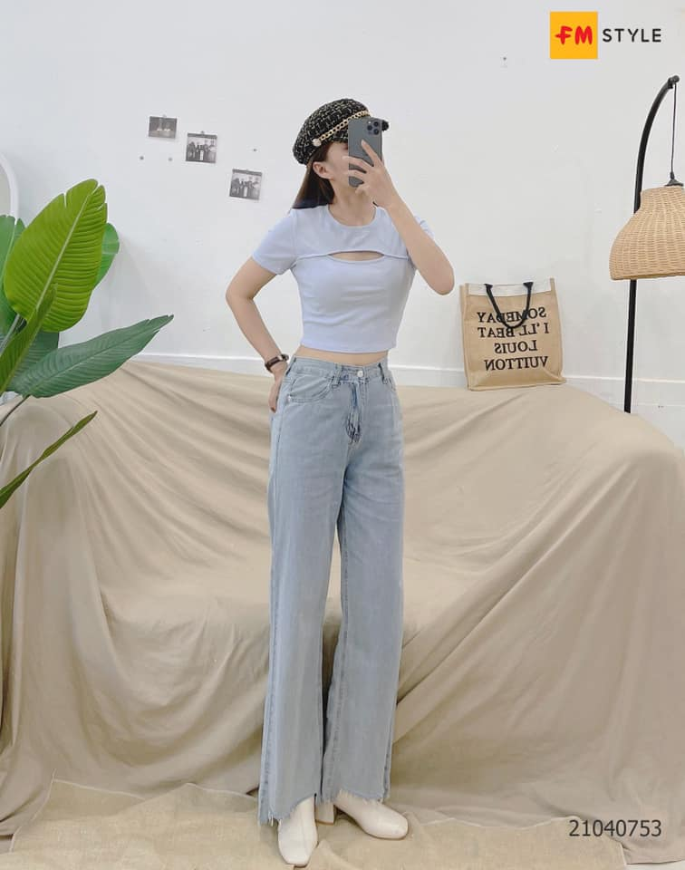 2. PHỐI ĐỒ CÙNG QUẦN JEANS ỐNG RỘNG.