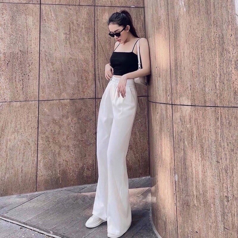 Bạn nghĩ sao nếu mix một chiếc quần tây ống rộng với chiếc áo ống 2 dây? Đây chính một outfits cho những nàng thích sexy nhưng phải cực chất.