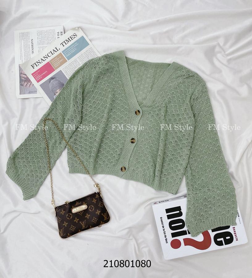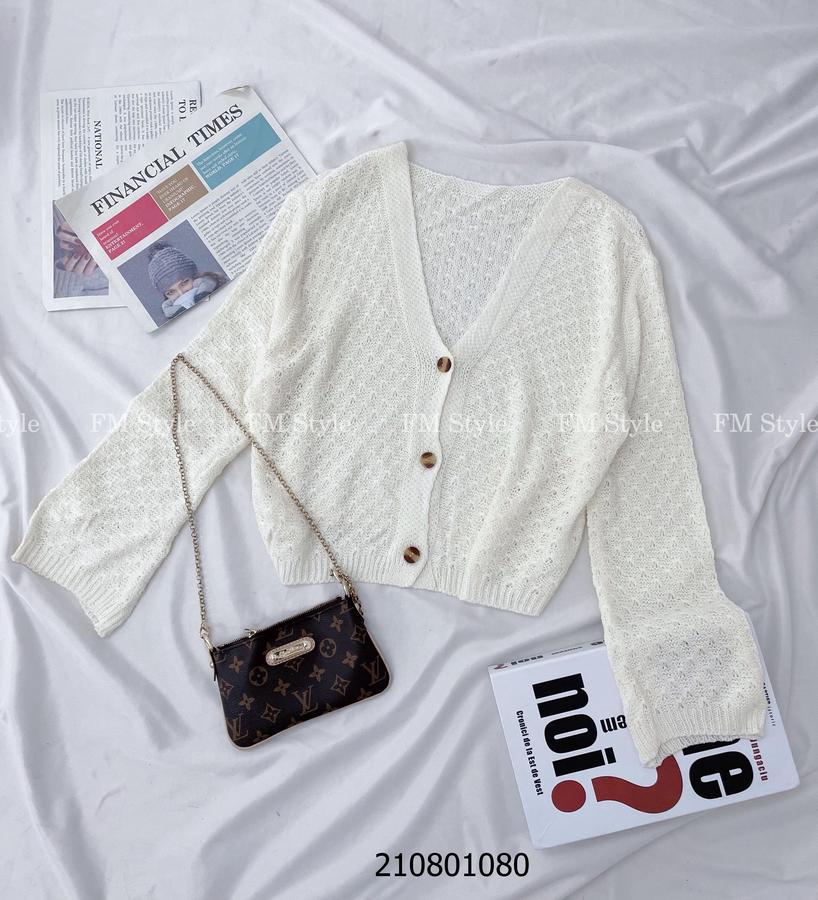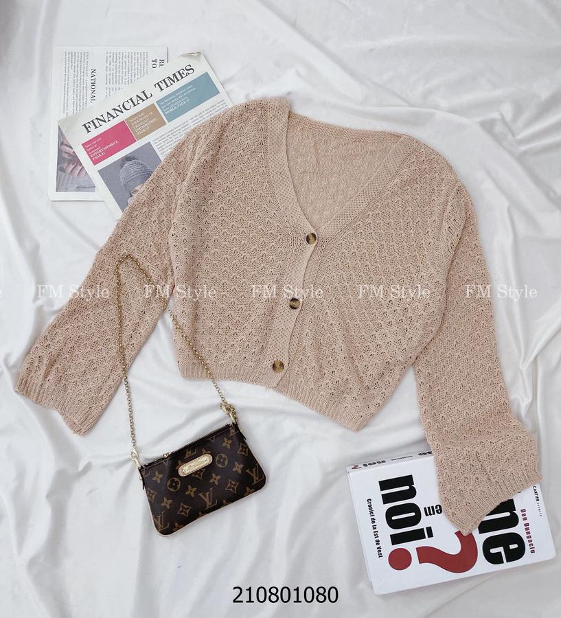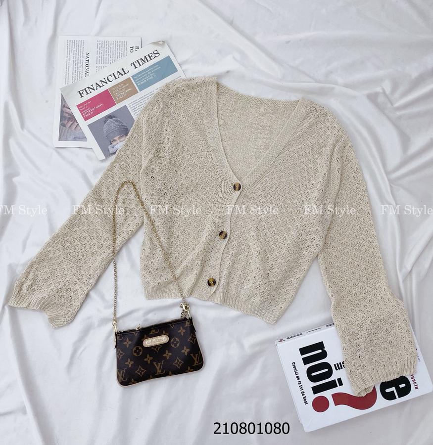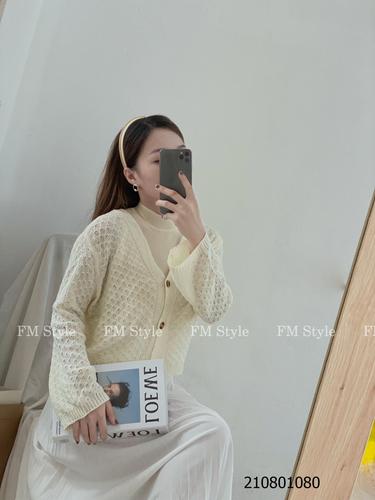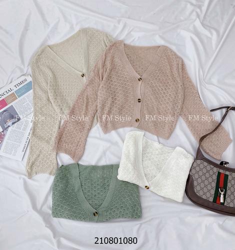 Áo khoác len nữ cổ V ba nút