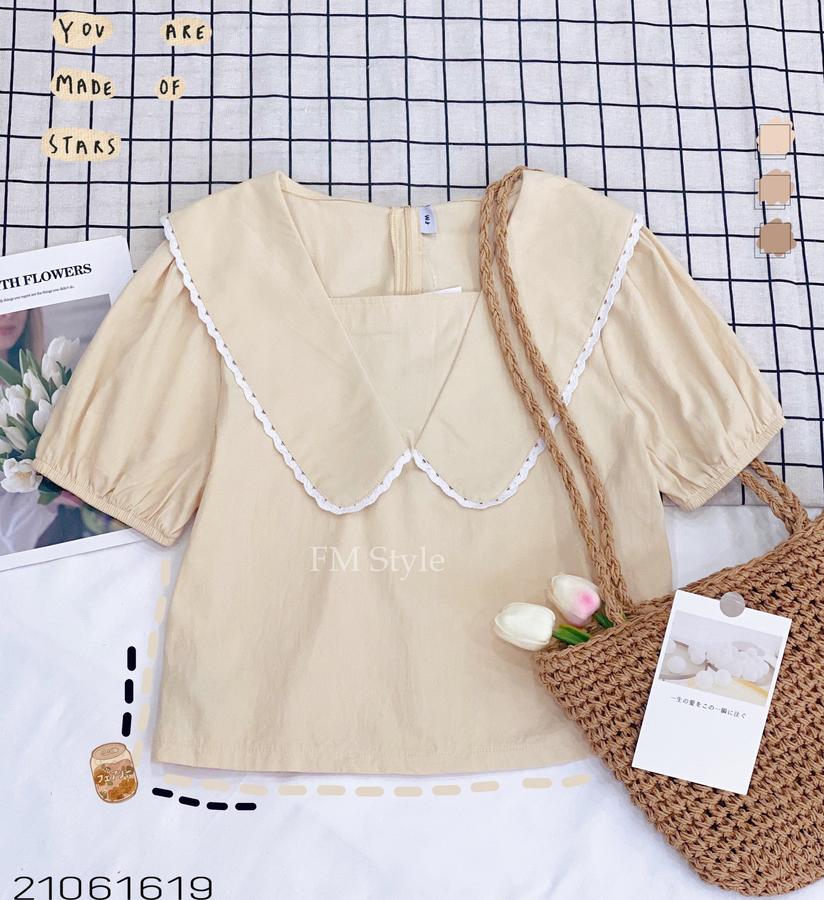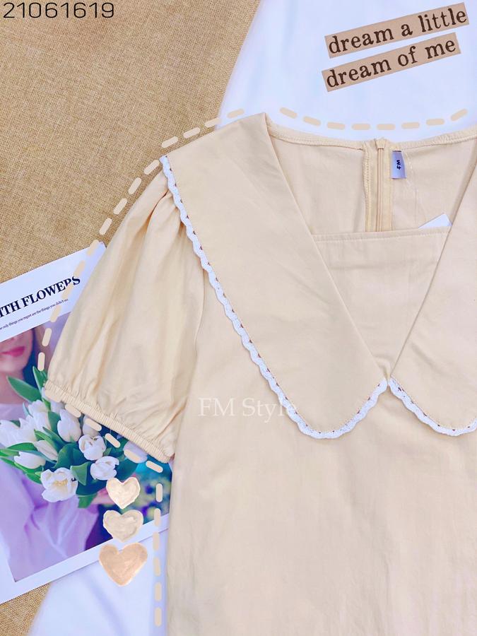 Áo kiểu cổ bèo V phối ren