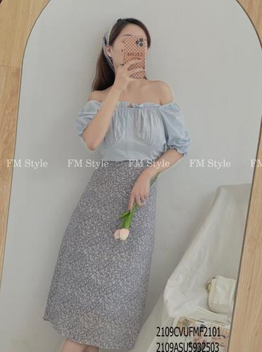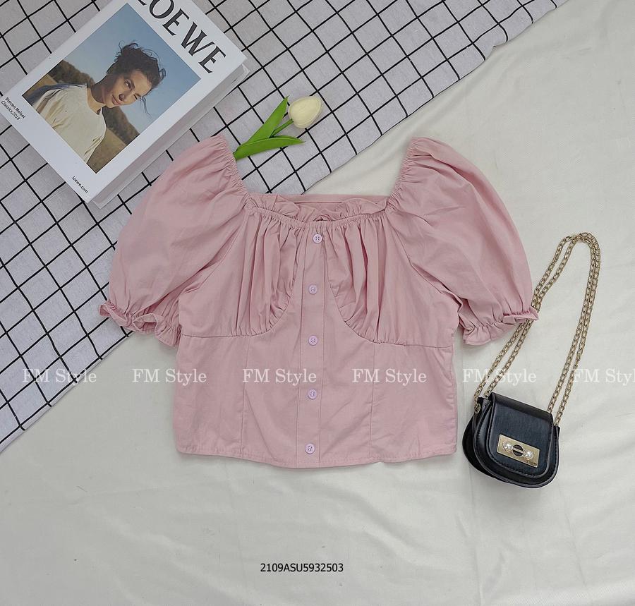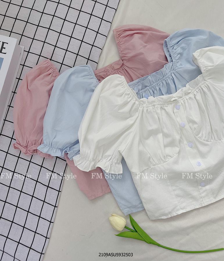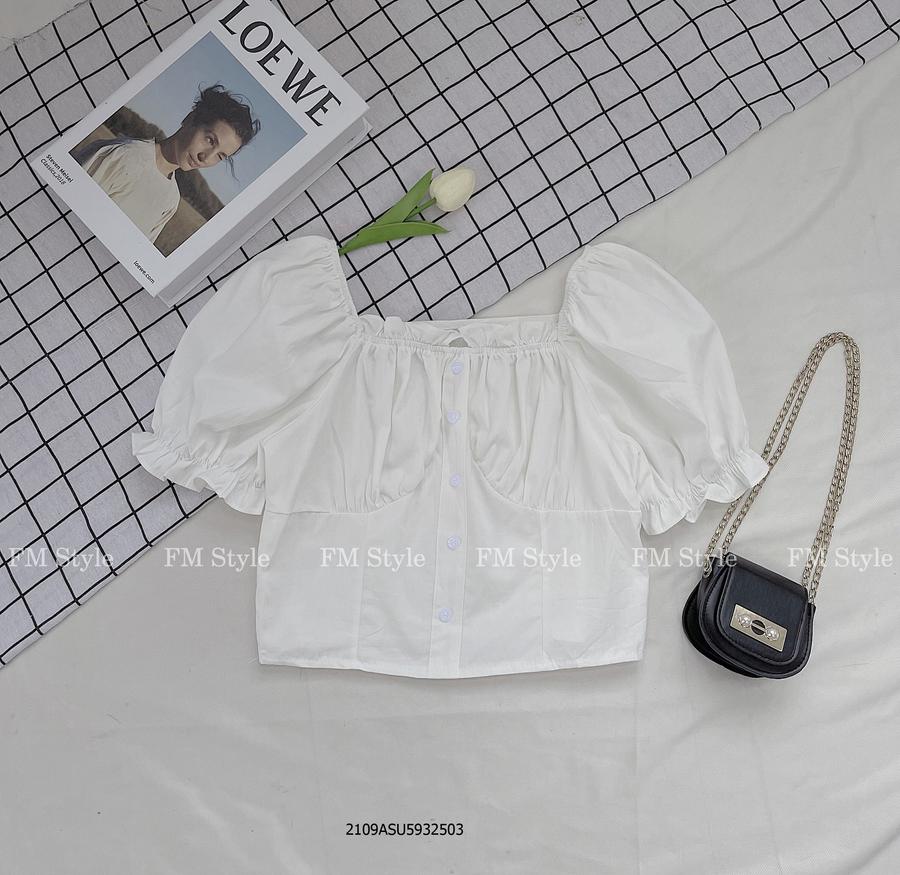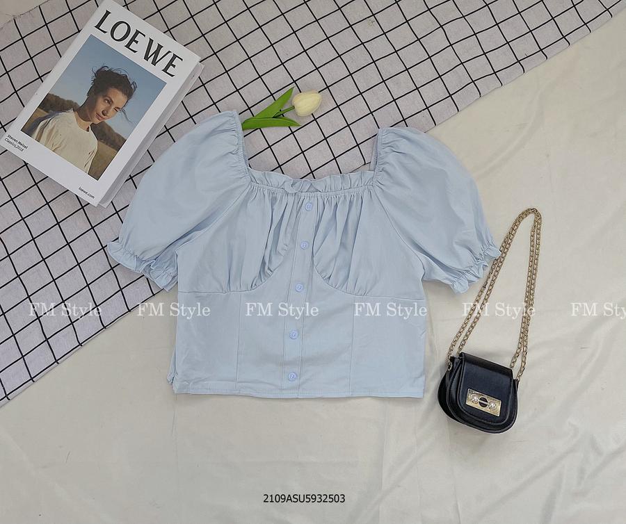 Áo kiểu crop bệch vai 5 nút
