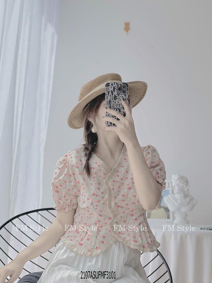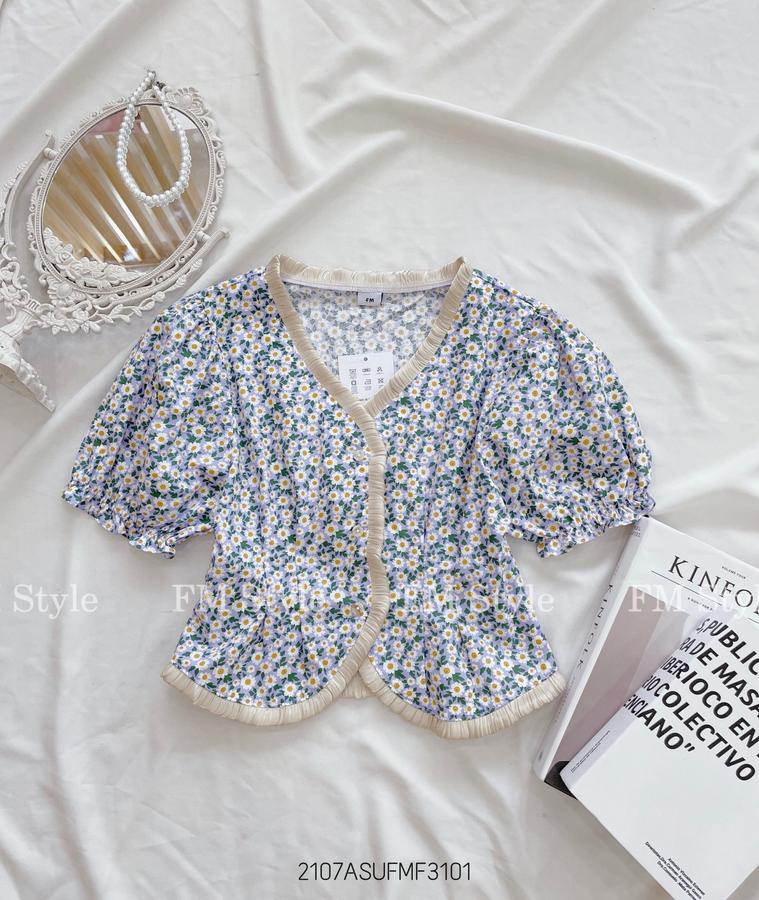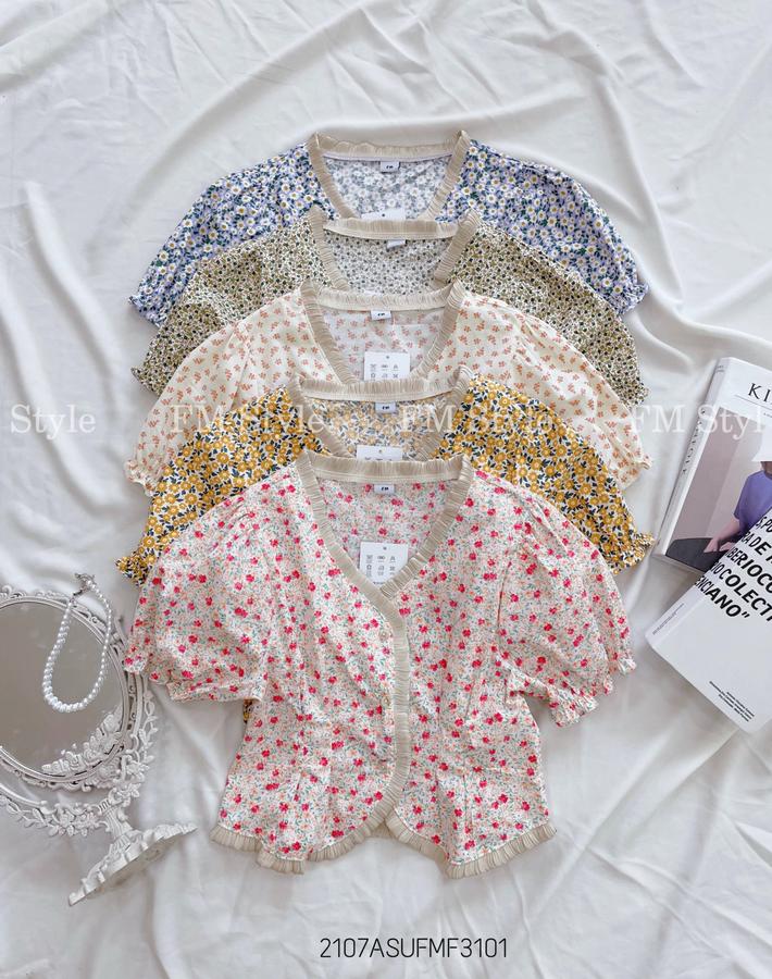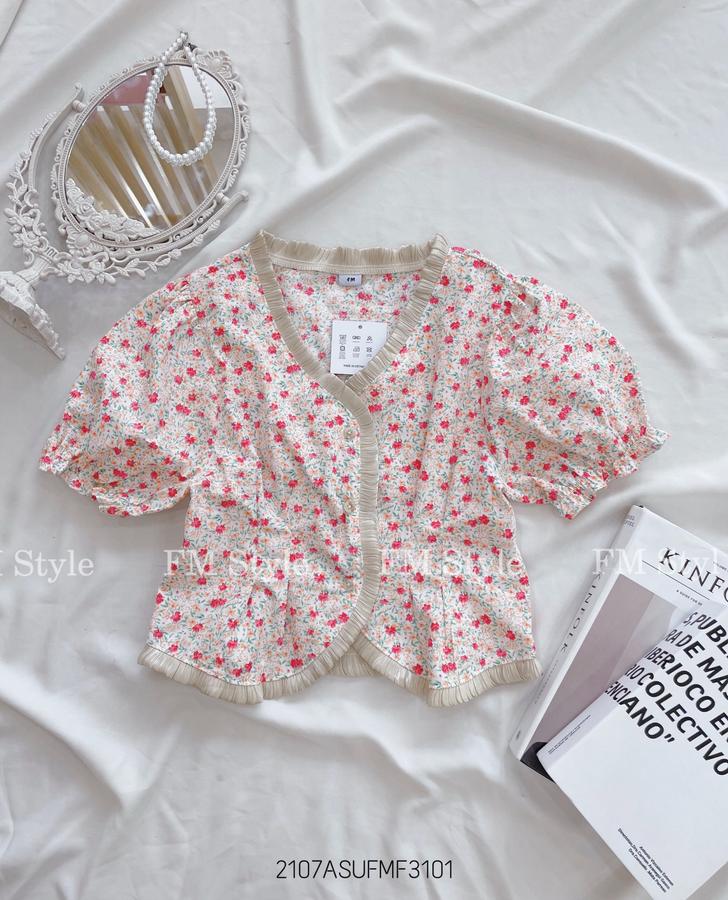 Áo kiểu hoa mix viền xinh