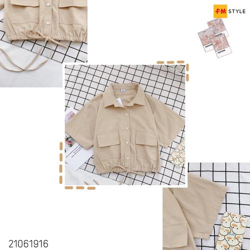Áo sơ mi cổ vẻ 2 túi rút dây