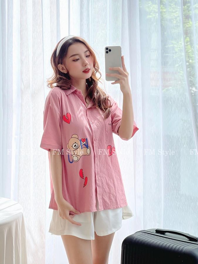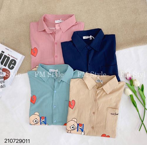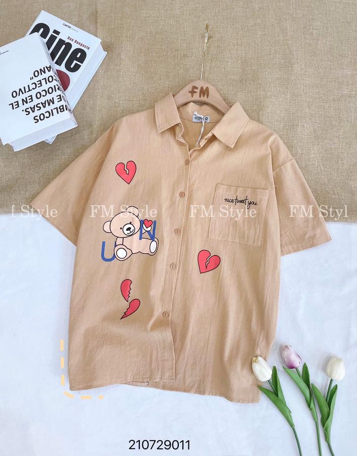 Áo sơ mi cổ bẻ in tim gấu