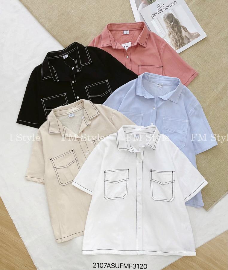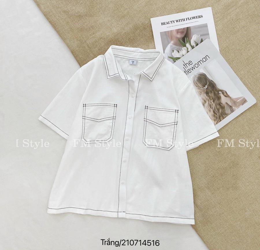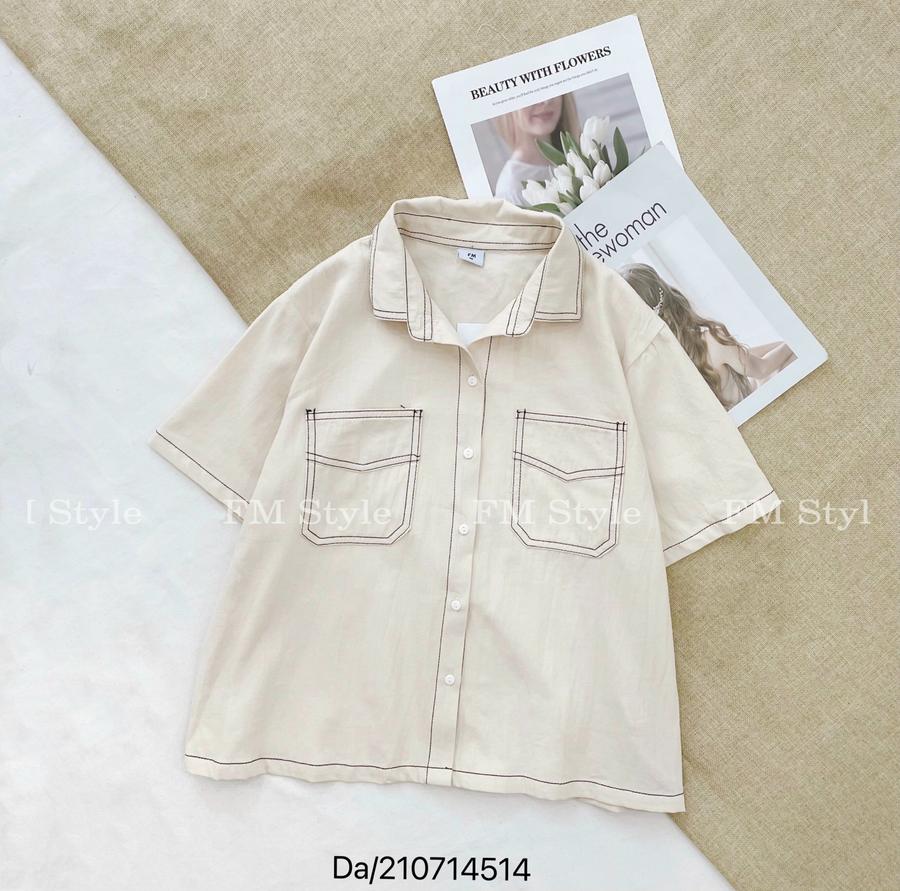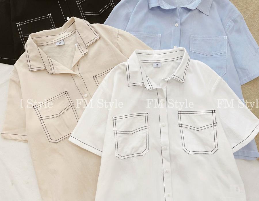 Áo sơ mi tay ngắn viền chỉ hai túi