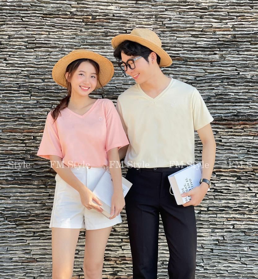 Áo thun nữ cổ tim , chất vải cotton thoáng mát