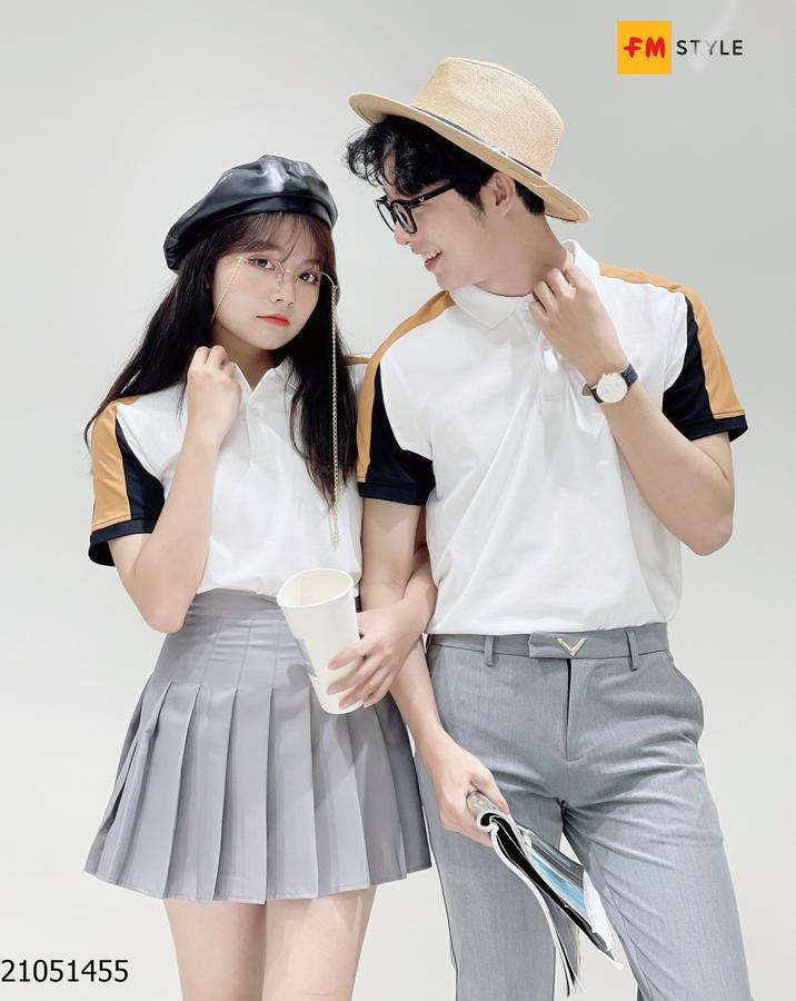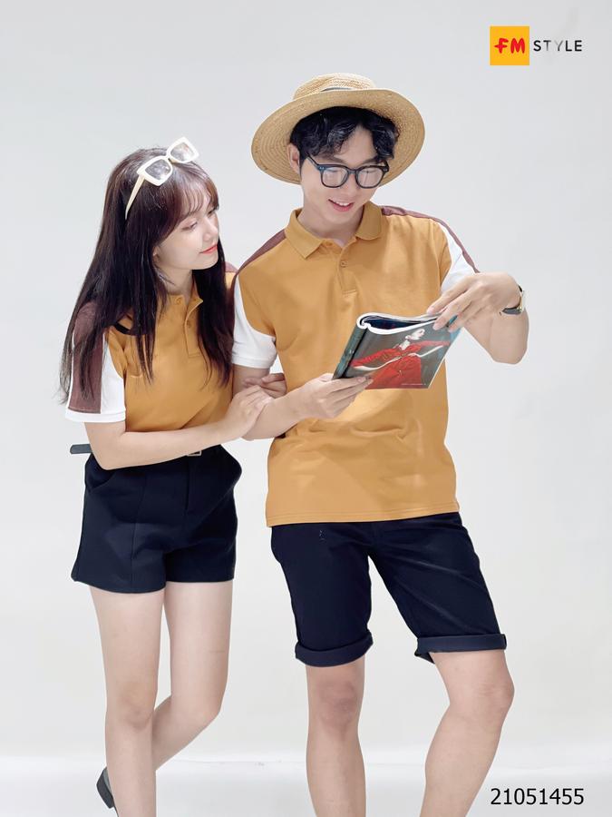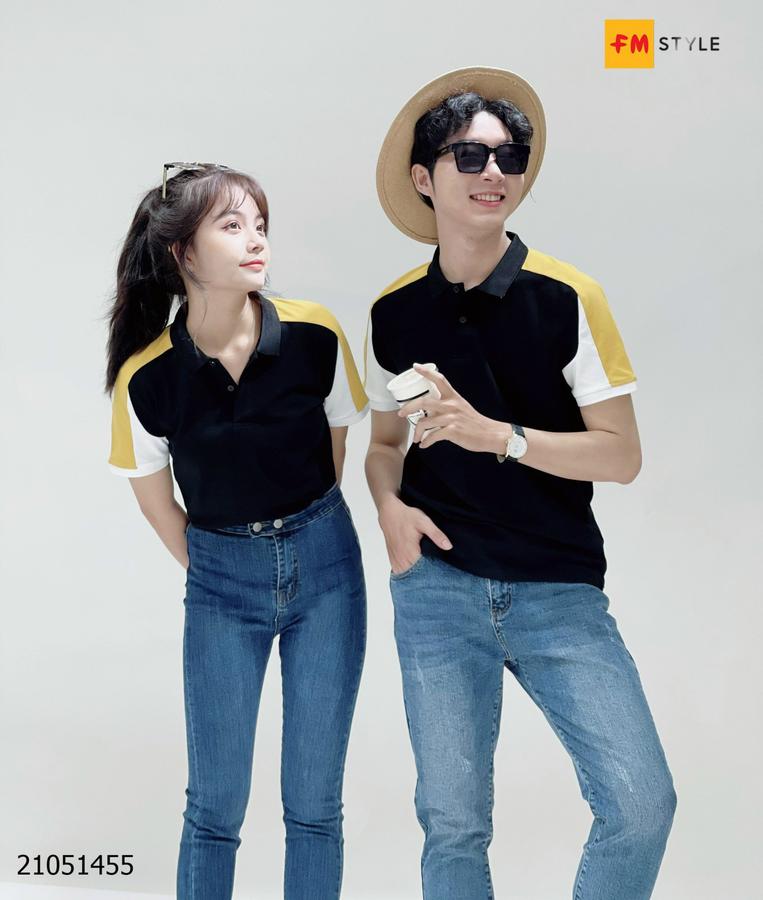 Áo thun nam cổ bẻ mix màu vai