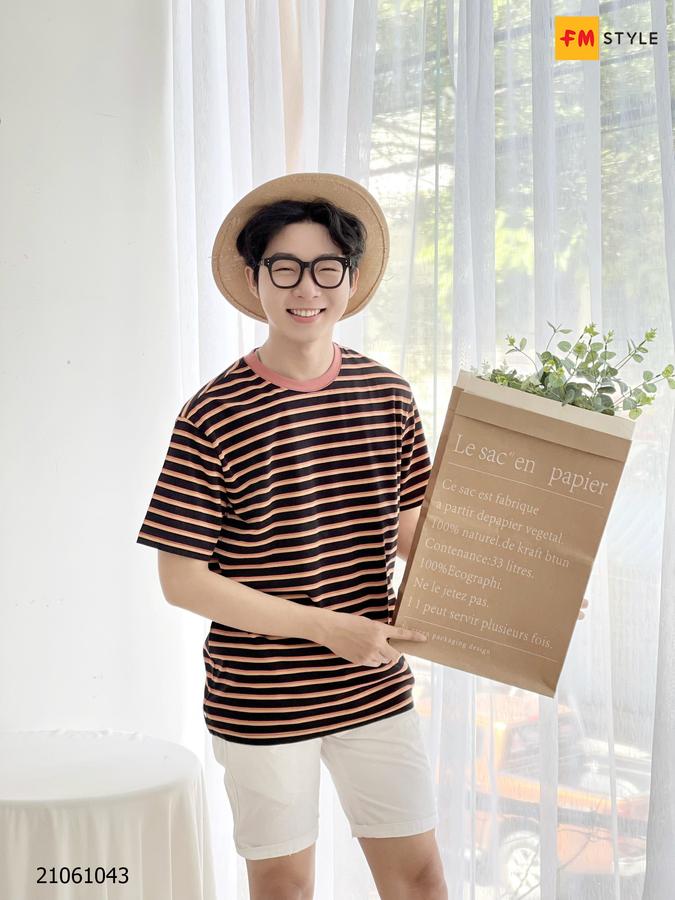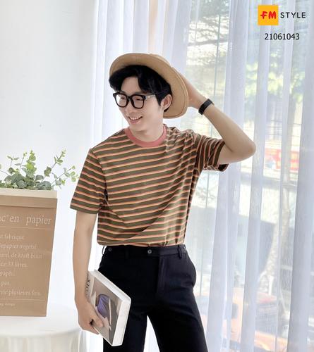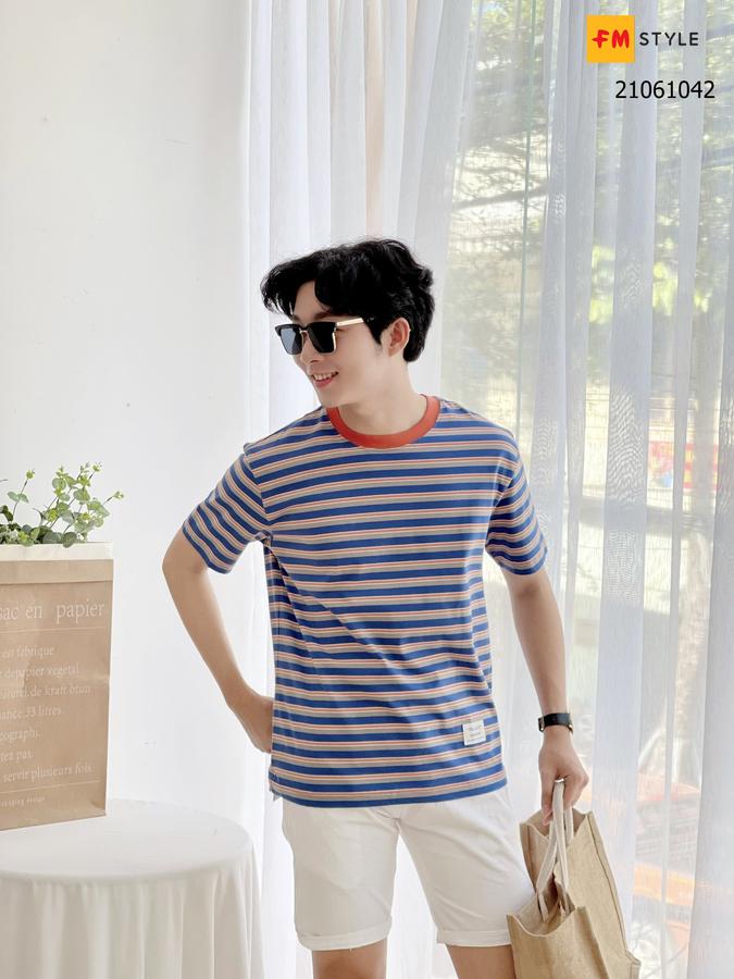 Áo thun nam cổ tròn sọc màu Freedom