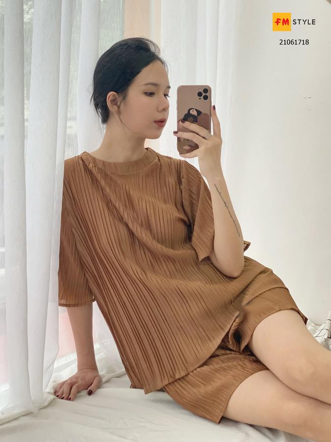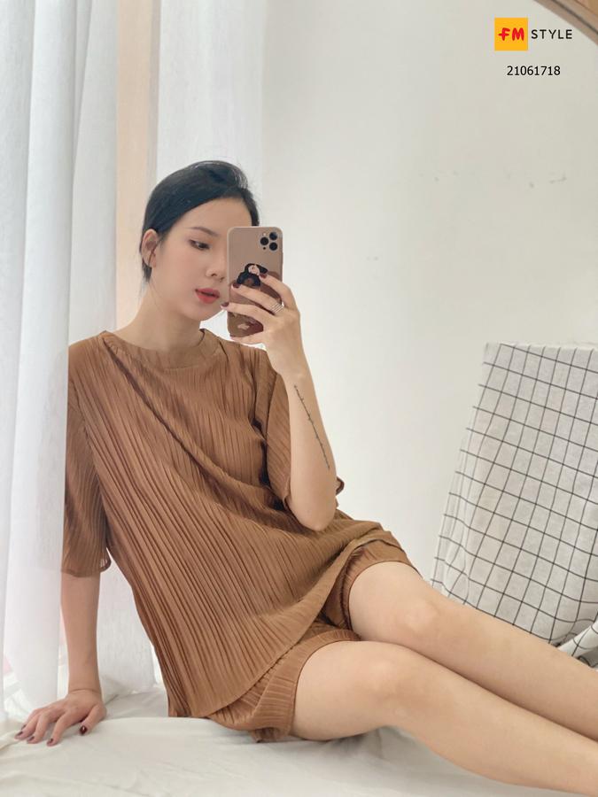Set áo cổ tròn và short trẻ trung