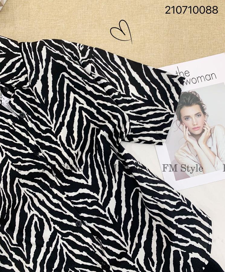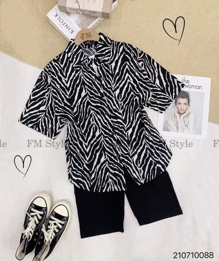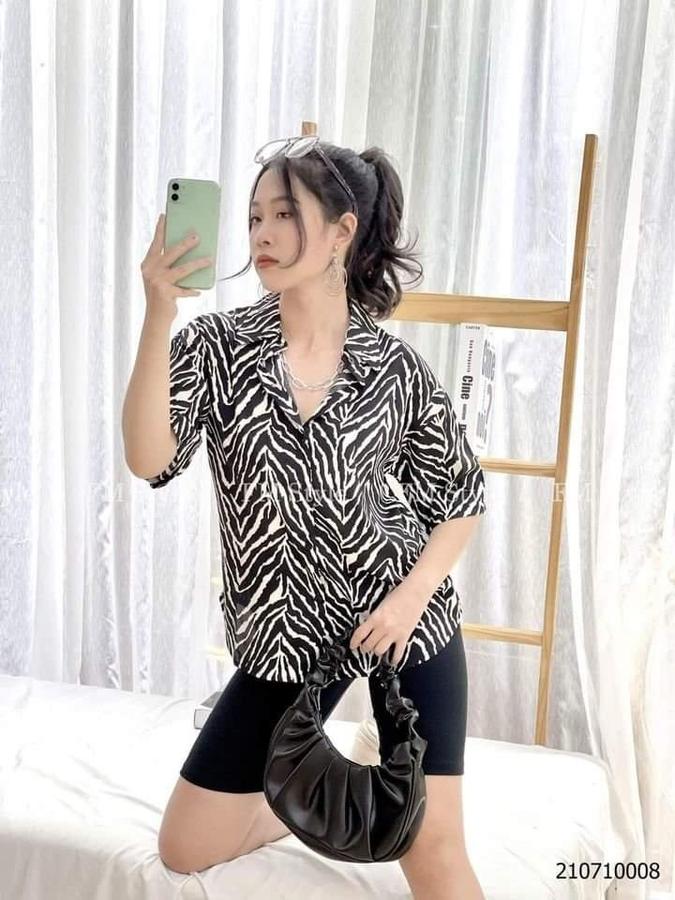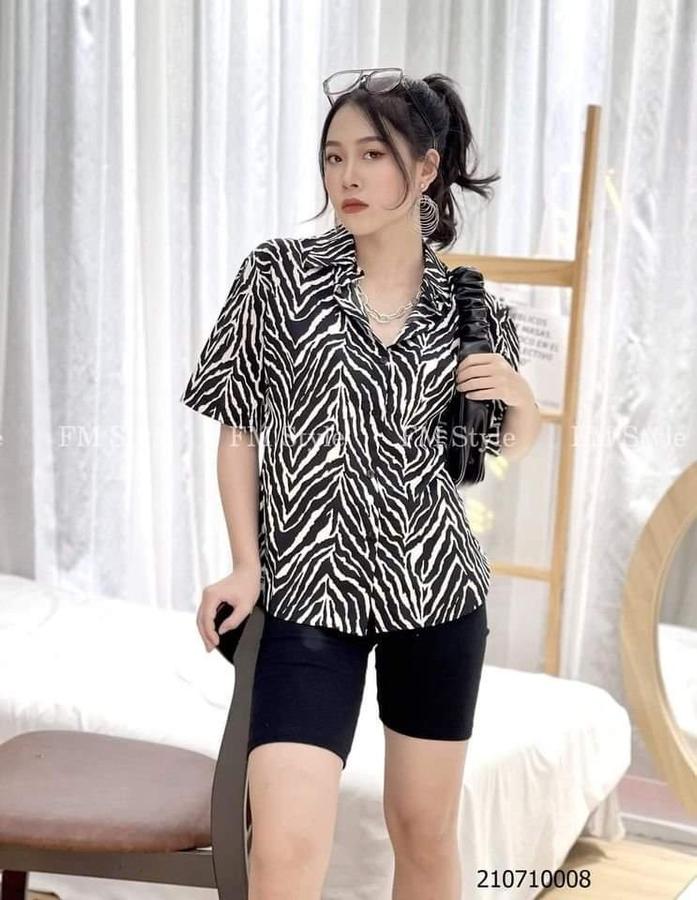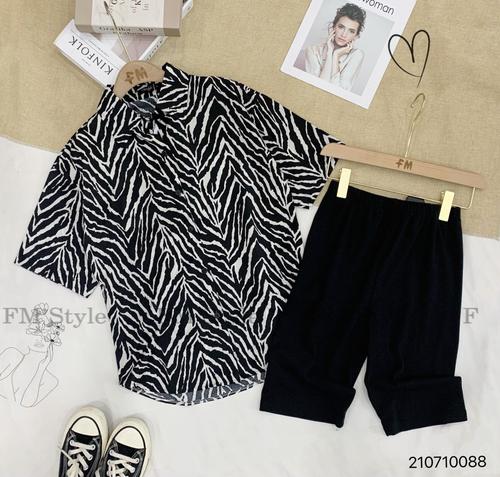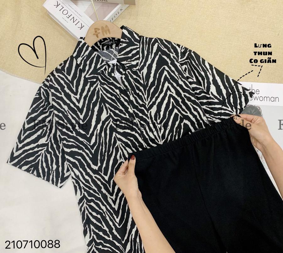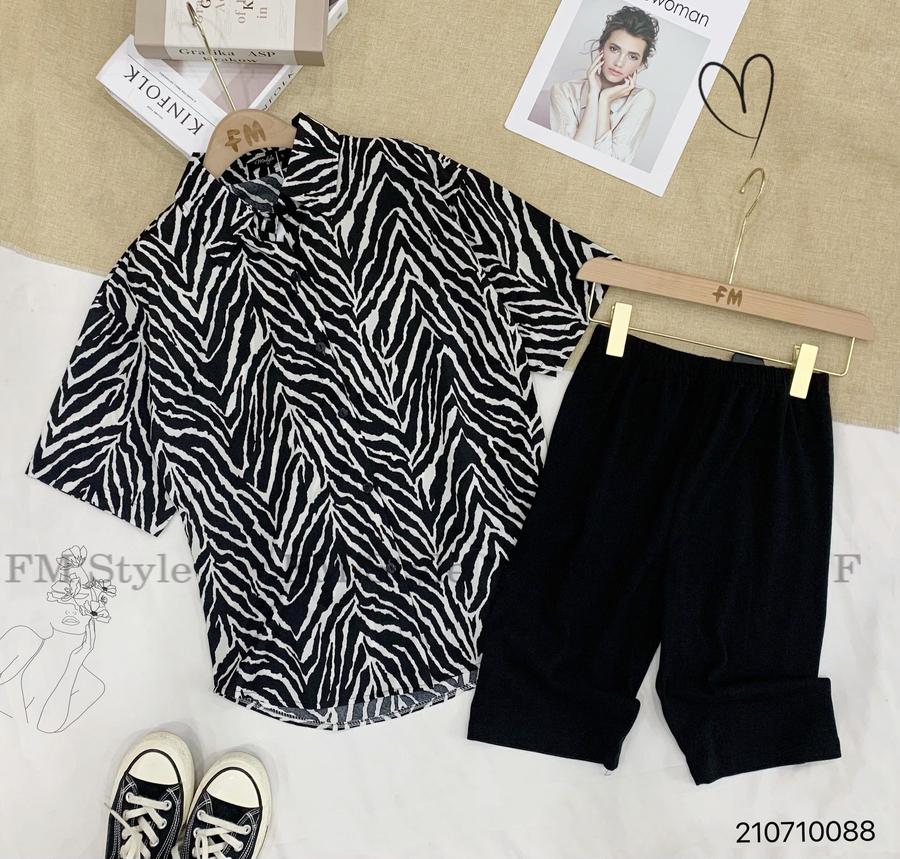 Set bộ leggin lửng sơ mi cổ bẻ họa tiết ngựa vằn