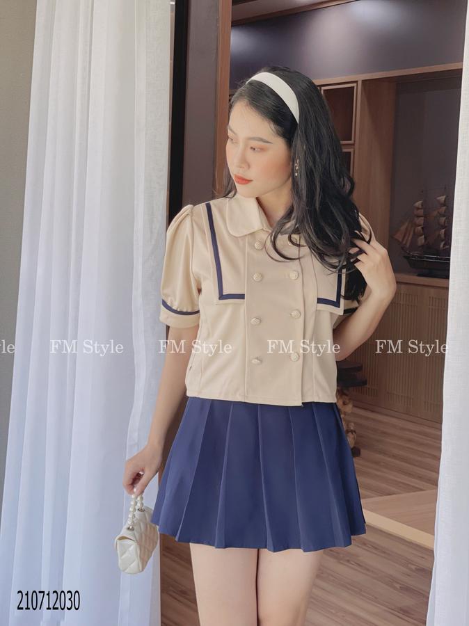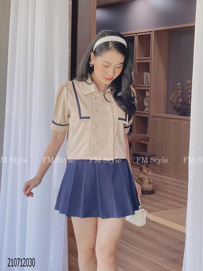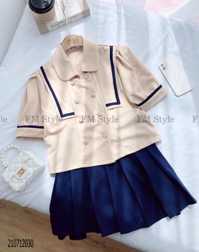 Set chân váy xếp ly kèm áo thủy thủ hàng nút