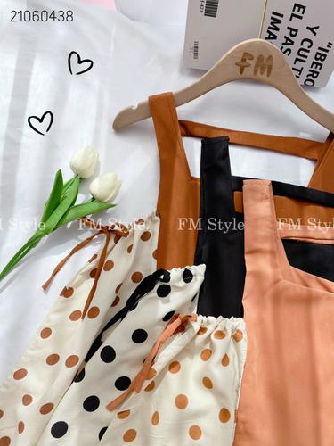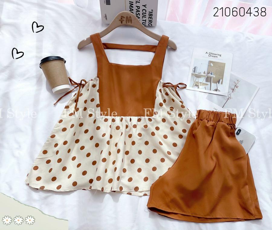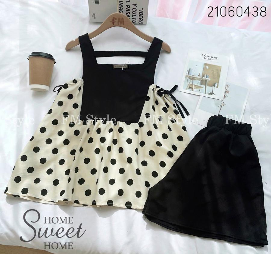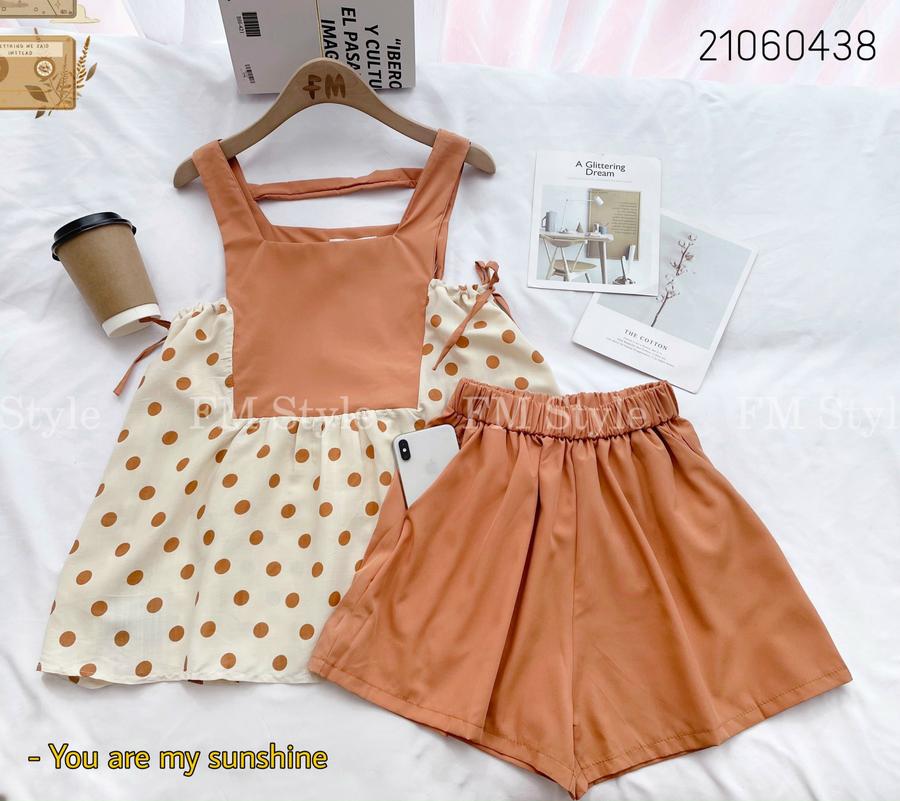 Set short kèm áo yếm chấm bi