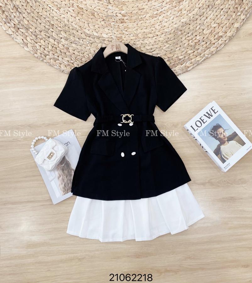 Set váy cùng áo vest kèm thắt lưng