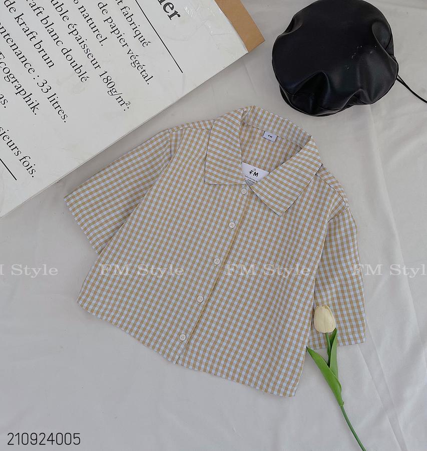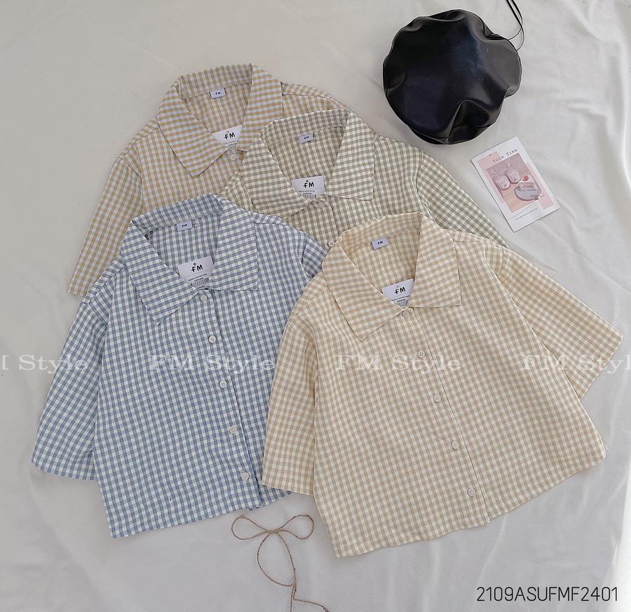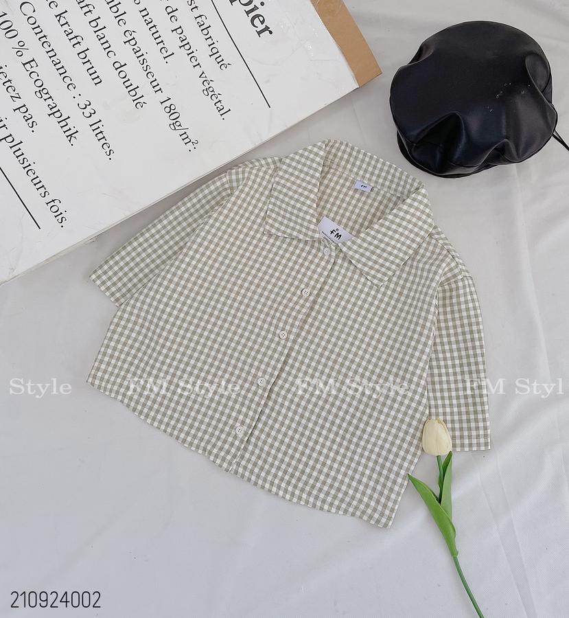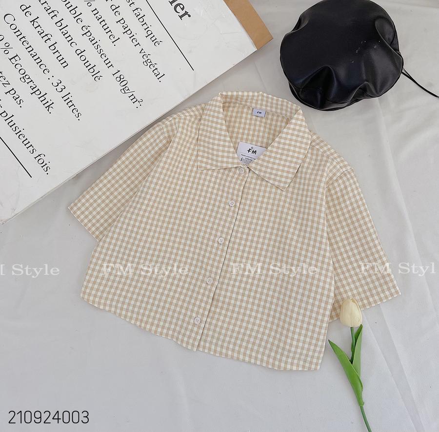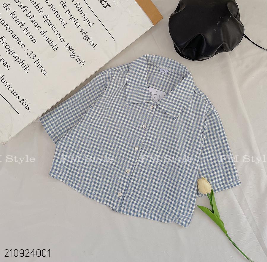 Sơ mi nữ kẻ crop cổ bẻ